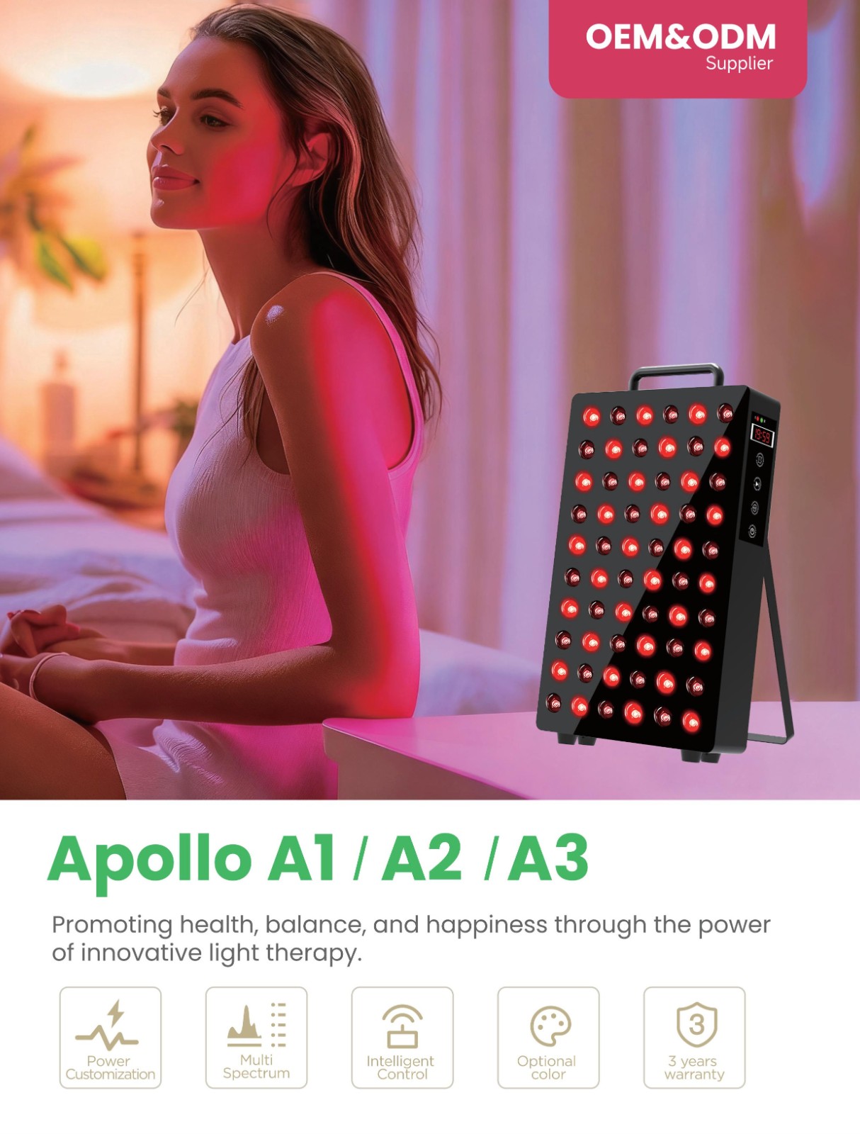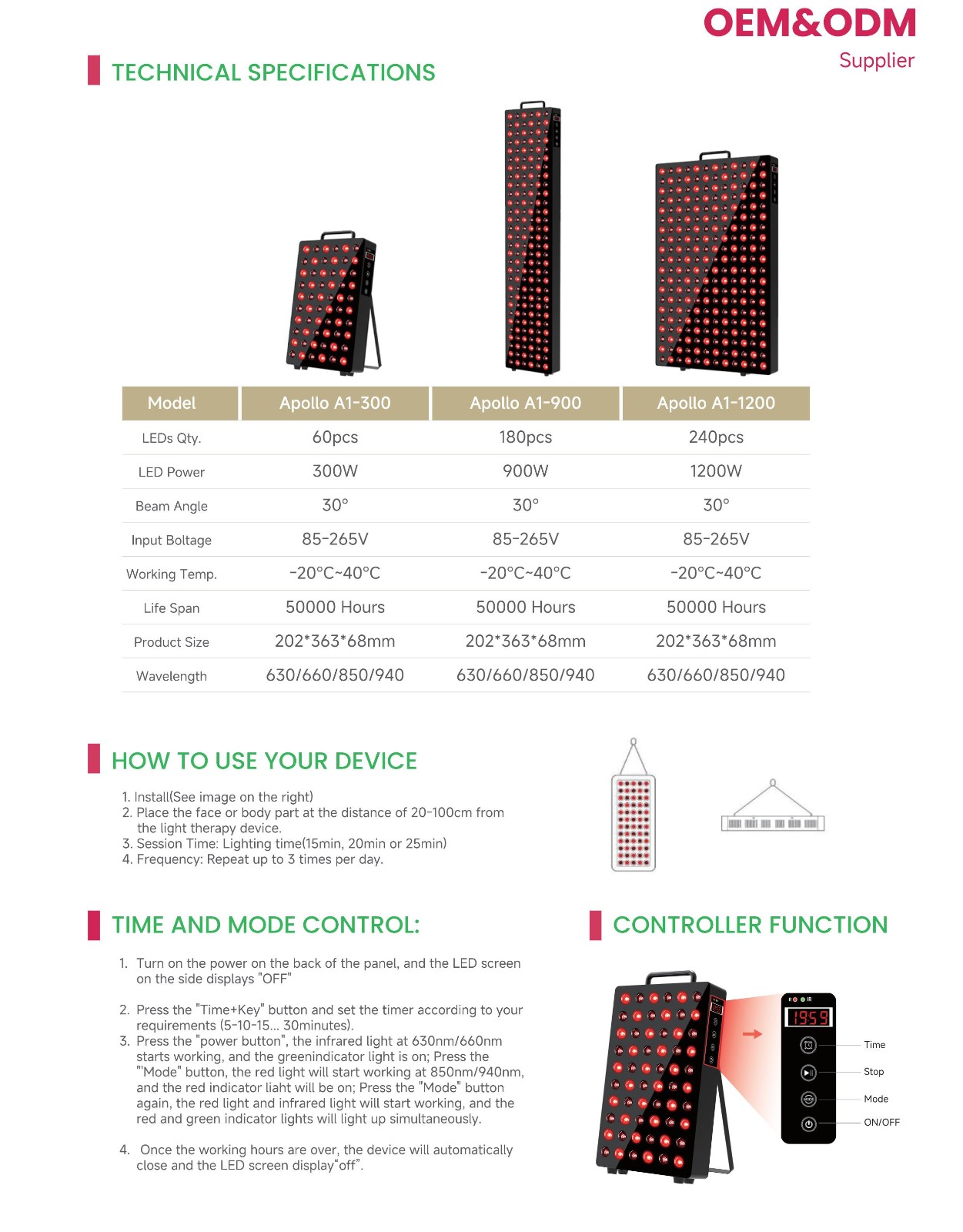 High-Efficiency Design: A 1:1 ratio of red to NIR light, high 115mW/cm² irradiance for faster treatments, and a 60-degree beam for even coverage.